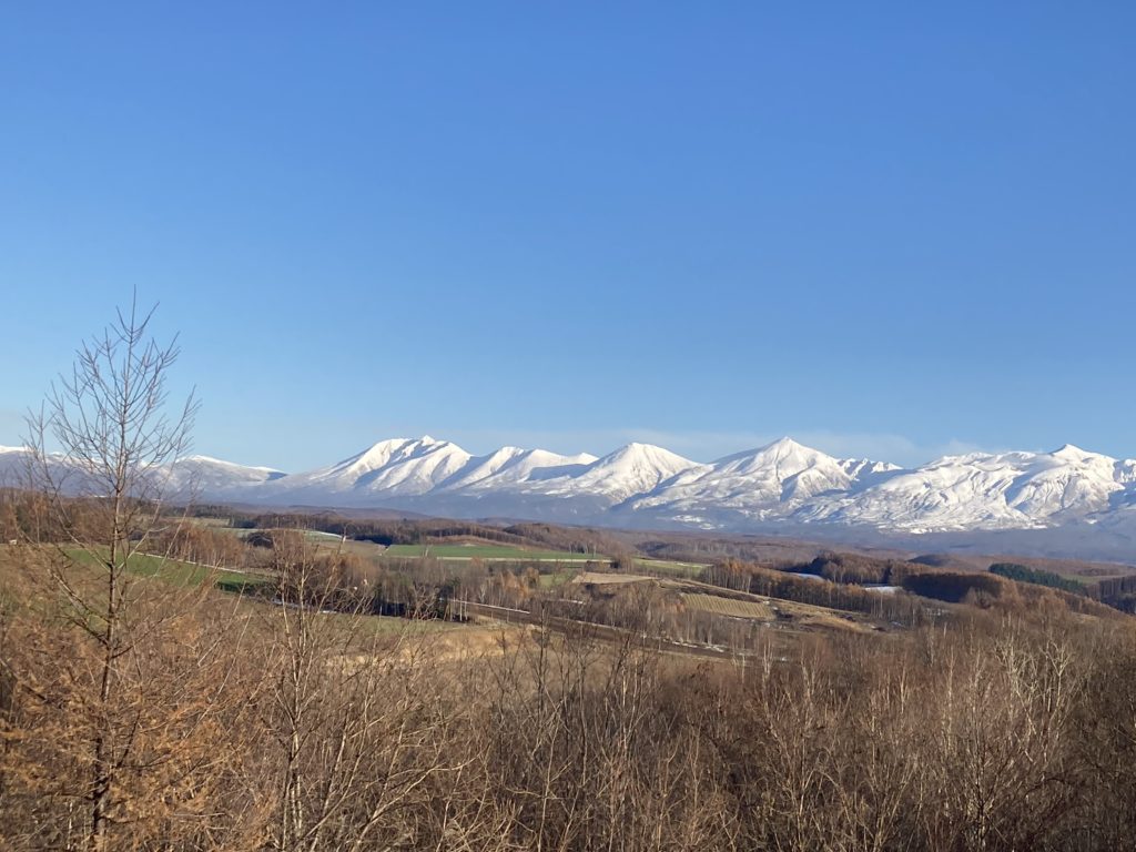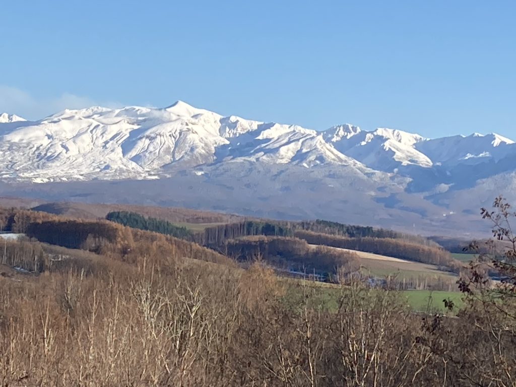 ここ数日の寒気も抜けて今日はポカポカ陽気。日中の気温は10℃近くまで上がり、辺りの雪は消えました。十勝岳連峰は雪景色のままですが、麓の森林とのコントラストがきれいですね。11月も半分が過ぎ、富良野もゆっくりと冬に向かっています。