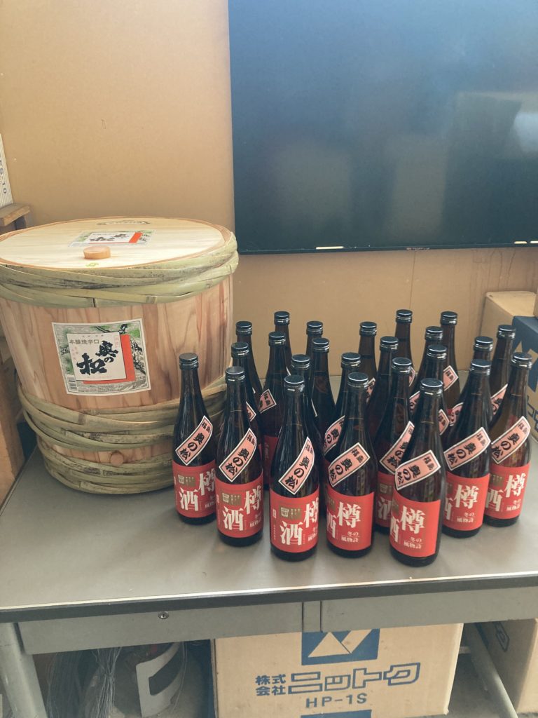 当店年末恒例の樽酒が明日30日午前9時より販売致します。二斗樽(36ℓ、1.8ℓ20本分)のまま仕入れてほどよく杉の香りを付けて四合瓶に移し替えて販売します。今日までに準備も整い明日の販売を待つのみです。135本を準備しましたが、残り数本の在庫がございます。30日以降完売の際はご容赦ください。