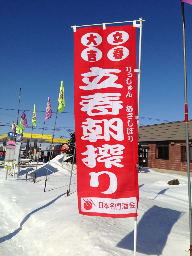 当店が加盟する「日本名門酒会」では、27年にわたり「立春朝搾り」を行っています。 この内容は、立春(今年は2月4日)の朝に搾ったお酒をその日のうちに飲むことができて、更に神社さんにお祓いを受けた縁起のいいお酒であるというものです。 立春とは二十四節気の一つで新しい年が始まるという意味があります。前日の節分で豆をまくのは邪気を払い福を呼び込み新しい年を迎えるため。立春の朝に搾ったばかりのお酒で、新しい年をお祝いしましょうという意味合いもあります。通常、酒蔵で瓶詰めされたお酒は配送期間や卸問屋さんに保管される期間があるので、口にするのはしばらく経ってからになります。このお酒は私たち酒屋が酒蔵に出向いて持ち帰ってくるので当日に飲むことが可能なんですね。 次回のブログからお酒の特徴や行事の様子などをお伝えしていきますのでよろしくお願いいたします。