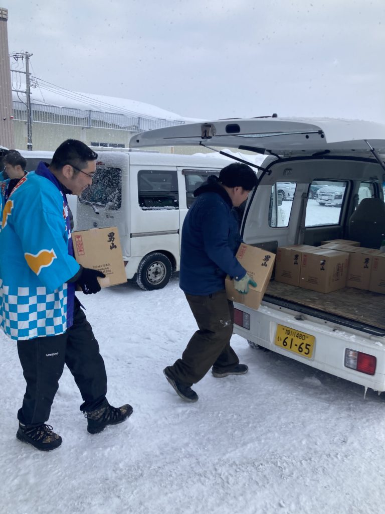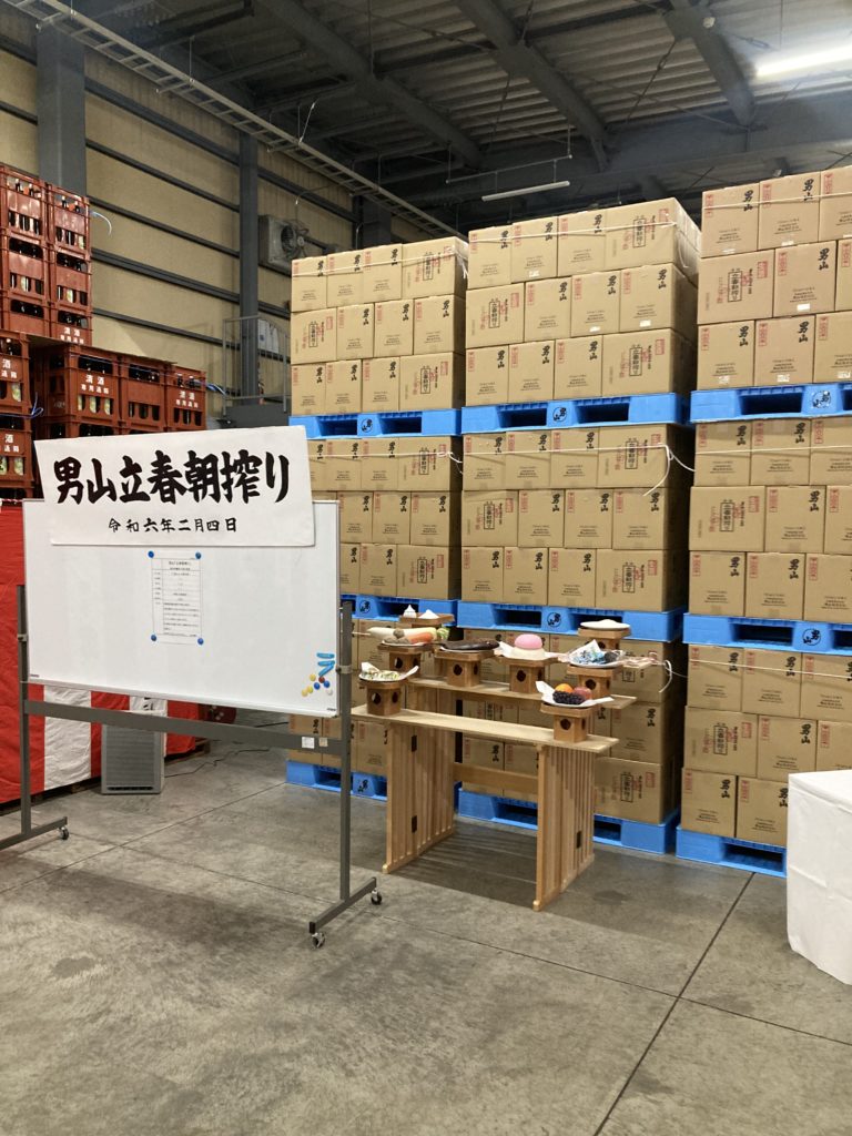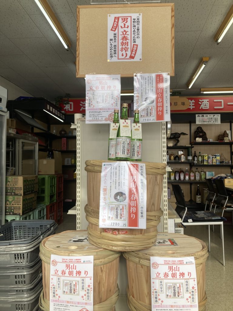 昨日、立春朝搾りが無事終了しました。朝7時に男山酒造に集合し、お酒の出来具合や作業工程などの説明を受けてお祓い後、集合写真を撮ってからお酒を積み込み帰宅しました。到着するなり待ってましたとばかり第一号のお客様にお買い上げいただきました。その後は夜までご予約いただいたお客様の対応に追われました。立春の朝に瓶詰めされたお酒をその日に飲む事ができる立春朝搾り。新しい春を迎えた日に縁起の良いお酒を飲んで昇り龍のようにどんどん運気を上げてくださいね。